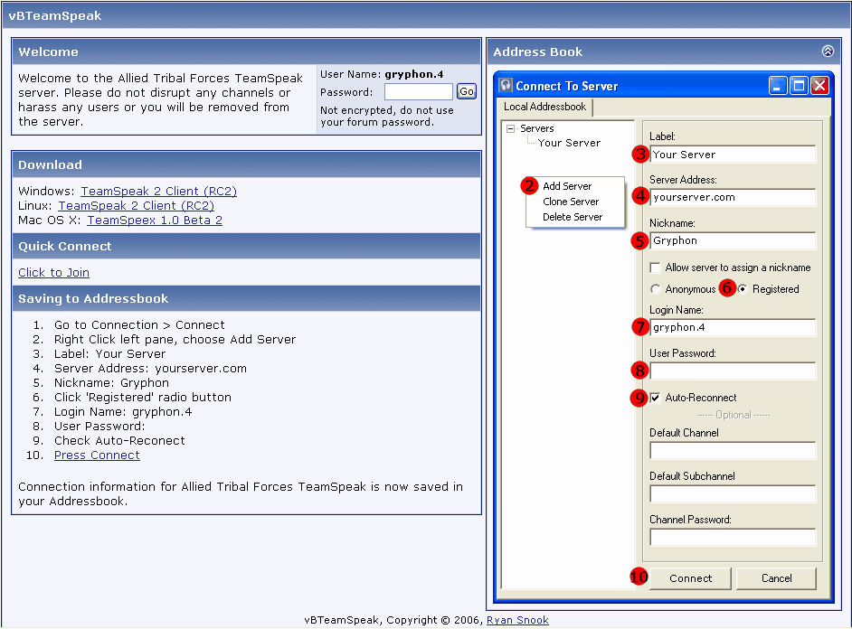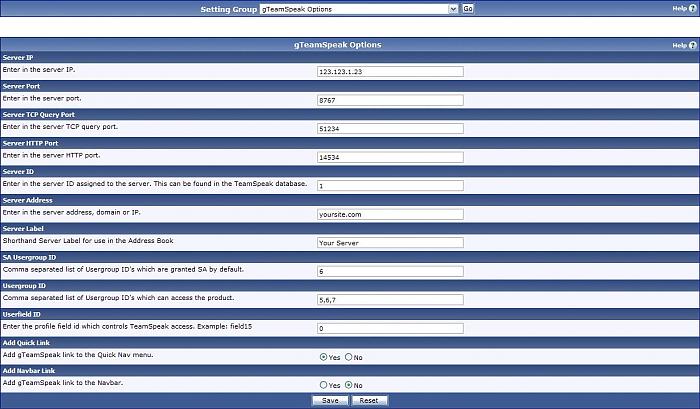 - Fill in the gTeamSpeak configuration options.