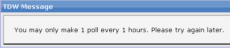 Description: This hack allows you to individually set to each user (if you'd like) how many polls they can post per x hours. Why: I just got sick of particular users on my forums constantly posting ridiculous polls. So I helped to alleviate that. This mod is completely BETA. Although it worked on my forums and should on yours, who's really to say? Download