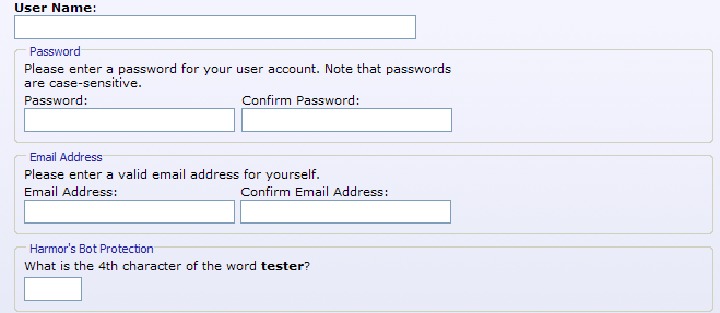 Let me explain how this works. On the registration page a potiental user has to enter a random character of a word. I have done something different though. It randomly selects a username from the database to be used as the word. Some of you may be asking "Can you explain how it does the checking"? On the registration page I have a hidden form that contains a hashed version of the correct character. After the form is submitted it checks if the the hashed version of the character you typed against the correct hash. If you installed this hack you can enable it by going to vBulletin Options --> User Registration Options The option to enable/disable the feature and to add your own hash are at the bottom. If you are upgrading this hack you'll need to edit the "register" template. Go to your ACP >> Styles & Templates >> Style Manager Expand the template you want to edit. Expand the Registration Templates category Open: register Find: HTML Code: