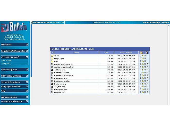 | Admin CP File Manager (FTP) - Download, Upload, Edit, Rename, Delete PHP Files/Images | vBulletin 3.0 Full Releases |