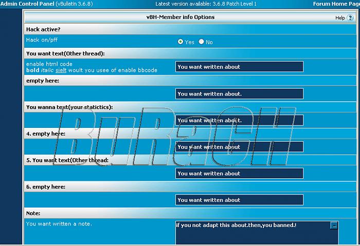 vBH-Memberinfo at Forumhome Developer by BuRaCH http://www.vB-Hacker.com If you like this skin then, please.. What this hack do? This adds create advanced memberinfo at forumhome Features
