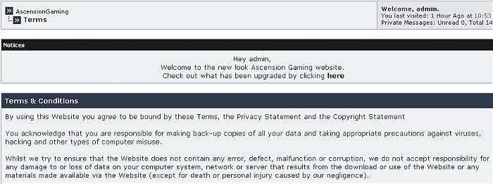 I have finally created my "First" ever modification to do with code, so please go easy on me. This modification will put a Terms & Conditions page on your website. Time to install: 1 minute Level : Easy Template Edit: 1 Plugins To Import: 1 Queries Ran: 0 File Upload: 1 This has been tested on: 3.6.8 3.7 (beta 2) 3.7 (beta 3) Please keep copyright intact and please also mark as installed if used. Download