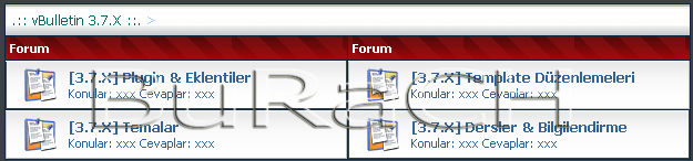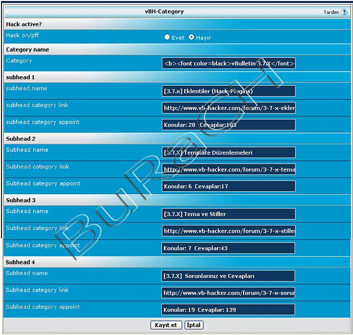 vBH-Category Manager Demo: http://vb-hacker.com/forum/index.php?styleid=19 If you like this Hack then, please.. What this hack do? This hack you want a table create at your website. Example; 1-) 2-) Note: İf you this hack make use of caps 1.then hide of other category.. Features