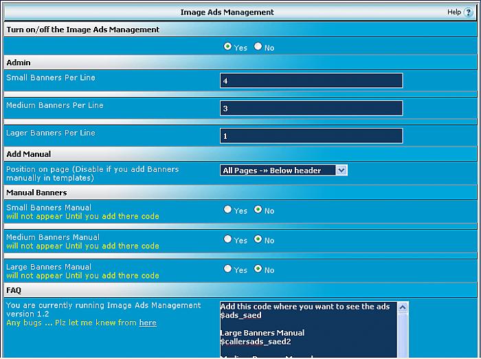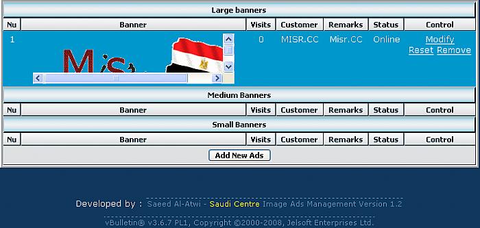 Image Ads Management Developed by Saeed Al-Atwi Hack description Allow you to mange your banners ads . Hack options & Demo Look Screenshots Install time: Not more 1m Install level: so Easy Installation Instructions :- Step 1: Import Product Step 2: Upload files form folder forumroot to your forum Step 3: Use Image Ads Management Hack screenshots ![]() Options Area ![]() Manage Area ![]() New Ads Area ![]() Hack changelog