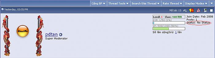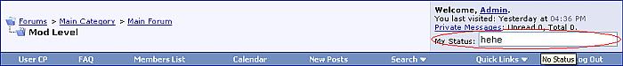 <div> $vbphrase[userstatus]: $post[userstatus] </div> - In "navbar": -- FIND: HTML Code: