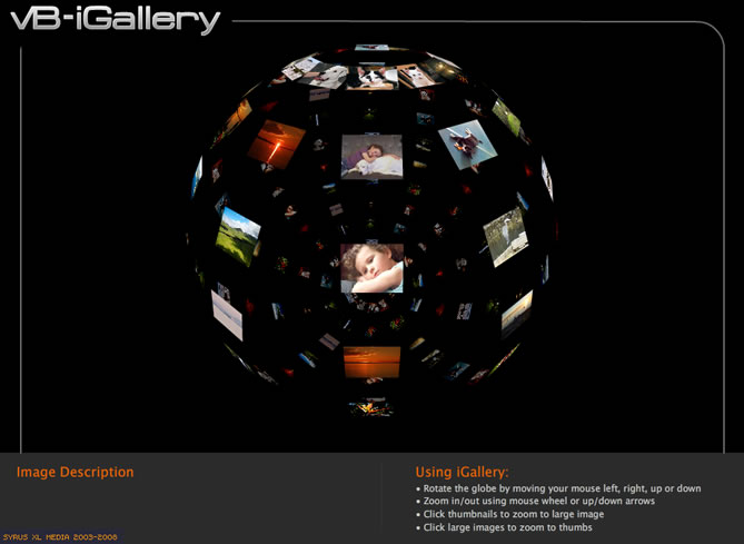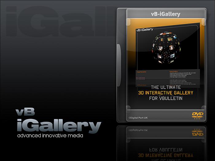 vB iGallery (XML Based) + vB iGallery V2.02 ![]() If you like this Modification recommend it for MOTM and remember to Click INSTALL for future updates 13th August 2008 - vBulletin 3.7 Bridge Released: Download is now available vB iGallery V2.02 now available. More features and very easy installation, optimized and brand new User Guides - also added the fully layered PSD to design your own background images. Demo V2.02: http://www.digitalport.co.uk/digital/vb_igallery.php Revision: 1.01(XML based Only) vB iGallery 1.01 (XML based only) requires no database to function (see V2.02 below for full vBulletin bridge to User Albums) about: vB iGallery is an XML based gallery, therefore uses no database queries. It uses http://papervision3d.org flash technology, giving you a unique 3D gallery Xperience. Fully tested on default and custom styles, and cross-browser compatible. Coded to work with vBulletin's DHTML menu system, to stop menu's dropping behind the flash object. This XML version uses it's own album directories - it is not integrated with vBulletin 3.7.x user albums yet. However, this will be done in a future update. Features