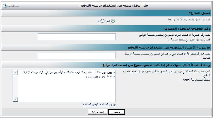 some time alot of users use signature wrong and we have to ban them! now with this product you can Prevent Specific members from using signature! Product is available in Arabic & English. Screen Shoots attached Please click . Download