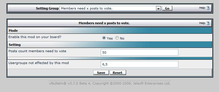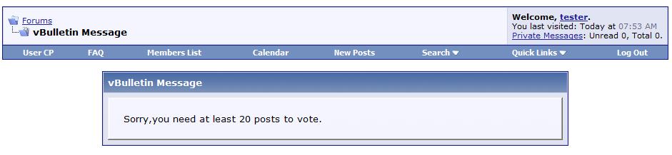 Function: A mod is quite simple, requires members to meet the number of posts by admin rules, the new votes, avoid cheating, to ensure fairness for the vote. Demo:File Attach Please click Mark as Installed if you want to get support for this mod Download