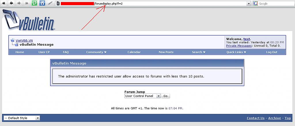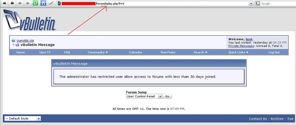Allows only users who made an X number of posts, in an X days joined, to view a forum. Info: Plugins: 3 Phrases: 18 Setting: 7 Install: 1. Import Product via Manage Products ACP >> Plugins & Products >> Manage Products >> [Add/Import Product] Allow Overwrite: Yes 2. Settings: ACP >> vBulletin Options >> Require X Days and X Posts Allow Access to Forum History: - 18/02/2009: First Release - 12/04/2009: Fix to view Showthread & Showpost. Download