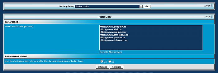 Usage: Import the xml product in your forum's AdminCP, then go to vBulletin Options-> Footer Links. Add your footer links (one per line) in the textarea field. You can specify additional link information (name, title) using separator (customizable, default: |). Examples: http://www.example.com http://www.example.com|link name http://www.example.com|link name|link title Download
