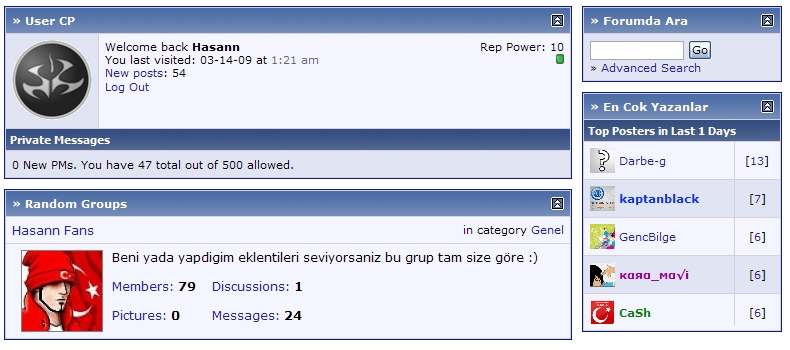 Random Groups vBAdvanced CMPS Module by ![]() This Product brought to you by http://www.vbulletin-turkey.com/ Description: This will add a CMPS block to your vBadvanced CMPS portal page. It will display the "Random Groups" in your vBulletin forums. NOTE: vB Optimise: vBAdvanced Integration Cache vBAdvanced Module: Random Groups if you turned this option to yes than this module generates 0 query Tested on:
