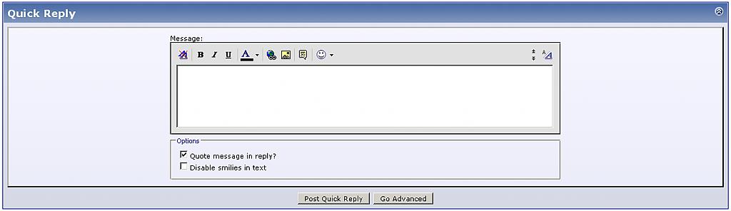 /*=============================================*\ || Smilies in QR and QE || || Author : Anton Kanevsky || Works on : vBulletin 3.5.x - 3.8.x || Released : Jun 05, 2009 || || Time required to install: ~30 seconds || Difficulty: easy \*=============================================*/ DESCRIPTION Displays standard vBulletin smilies in quick reply and quick edit, which are not there by default. STATISTICS Products to Install: 1 VERSION HISTORY 1.1.0 [+] The modification is now compatible with vBulletin 3.5.x - 3.8.x. [+] Eliminated all template edits. 1.0.3 [+] The modification is now compatible with vBulletin 3.6. 1.0.2 [+] The dropdown has been added to the quick edit form. [+] The hack is now free of code modifications. 1.0.1 [F] Templates are now cached, 4 queries saved. 1.0.0 Initial Release The installation manual is contained within the attached file. IF YOU LIKE MY HACK, PLEASE Download