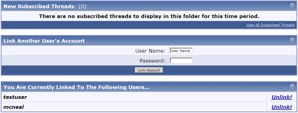 | Profile Enhancements Quick Account Switch | vBulletin 3.6 Add-ons |