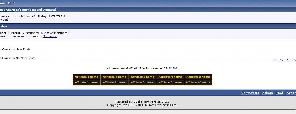 What does it do? What this mod does is adds a table in your footer where you can add links to affiliating sites. Screenshot: ![]() This is what it will look like from admin CP side: ![]() How to install: