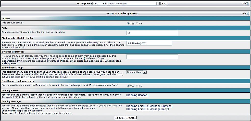 Control:- vBulletin AdminCP -> vBulletin Options -> vBulletin Options -> SSGTI - Ban Under Age Users