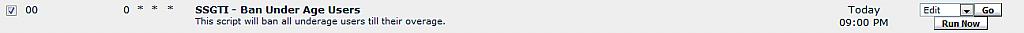 - vBulletin AdminCP -> Scheduled Tasks -> Scheduled Task Manager -> SSGTI - Ban Under Age Users