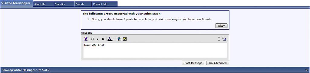 - Minimum posts required before posting visitor message.