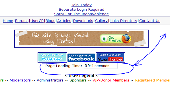 Bug Found ! Its no biggy, but still doesn't do what its meant to do on "ALL" pages. The timer does not load while viewing thread !!! Sorry, I call myself testing this on "ALL" pages before releasing it, but apparently I overlooked that one page loading. Please if anyone can come up with a fix, Please post. The Mod/Hack works fine other than that. ( Works as should on Joomla, and phpbb ) This is a vBulletin thing, and I'm still learning vBulletin code, so please bare with me. Updated the Instructions in the download attachment also. Page Loading Time ( Hack ) I Searched for nearly two hours to find this hack. Either all the scripts I found had backlinks in them or they plain just didn't work. 2 Step Page Loading Time ( Hack ) 1) Place this code at the bottom of your " headinclude " ( Style Manager/your_style/All Style Options/ >>Go ) Code: