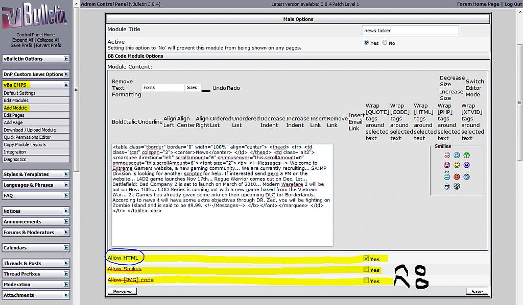Demo: http://www.extreme-gamers.org Make a new mod by going to admin portal page then vBa CMPS> Add Module> BB Code Module Paste This: Code: