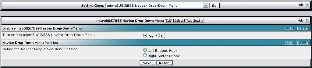 Description : microBUSINESS Navbar Drop-Down Menu for microBUSINESS AddOn microBUSINESS AddOn Link : microBUSINESS (Business directory and more) Please remember to click Mark as Installed if you use this modification. NO SUPPORT FOR USERS NOT MARKED AS INSTALLED. Files : 0 Plugins : 3 Settings : 1 Group / 2 Settings Templates : 2 Phrases : 13 Instalation 1. Import Installation File. 2. Only for vBadvanced Users Go to Admin CP => vBa CMPS => Default Settings => Main Options => Portal Output Global Variables and add the variables: Code: