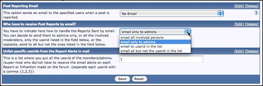 This is a simple whitelist of a sort, because you may not want all the moderators to receive these reports emails... (i personally hate to have these emails, but some like them) in the Admincp >> vBulletin Options >> User Infractions Engine Updated: added the choice to send the email to different types of persons... Download