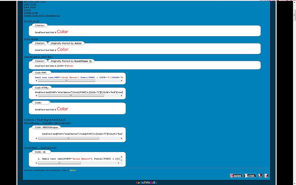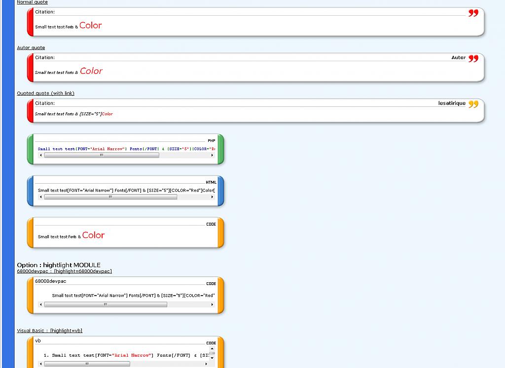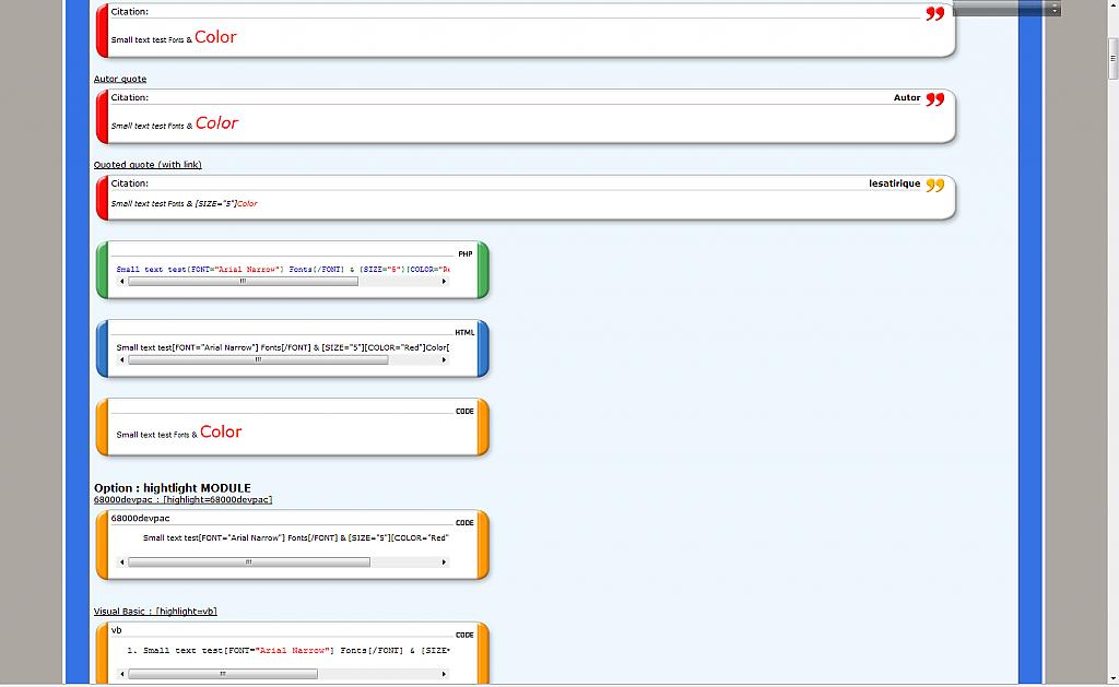 - You can configure the width of HTML, CODE & PHP bbcodes (in pixels) => no need any more to change the "Code block width" value of your style.