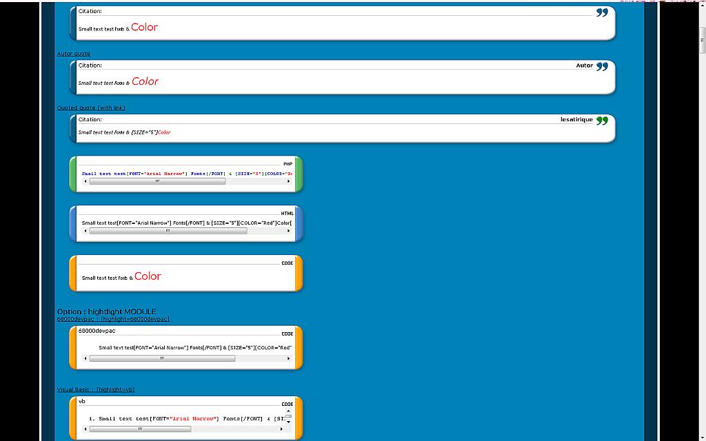 - You can configure to display a scroll bar in QUOTE bbcode ; in that case, you can also configure its height (max-height ; except on IE6)