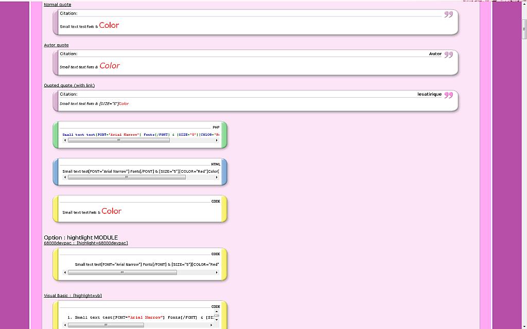 - You can configure : the left margin of bbcode, the color and the size of text.